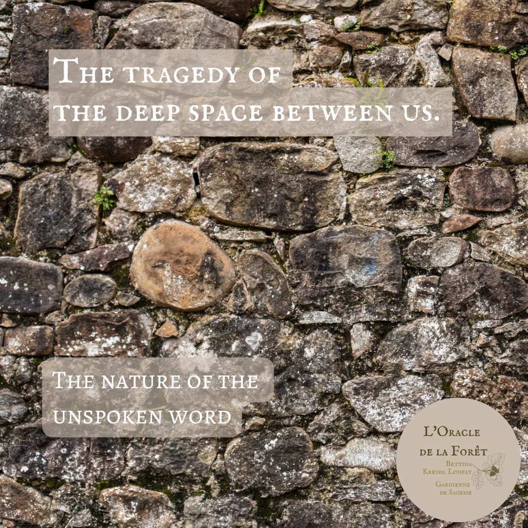 It goes like this: sometimes, the words we communicate and the words we keep for ourselves, do not reach the person they are destined for. Be it because of physical, mental or emotional distance. Reasons may vary, but the words, the misunderstandings do not reach far enough. And so they fall. The fall into the space between two people, never going to their intended place, never reaching the understanding that was aimed, never communicating what was expected by the person saying or writing them. They are ineffective in their finality, grains falling on infertile ground or bricks falling from the sky into a ravine. They keep falling. In this space between people. This unnamed wasteland where misunderstandings, conflict, expectations and disappointment withers away. There is a certain tragedy in their falling, and in their growing and building.